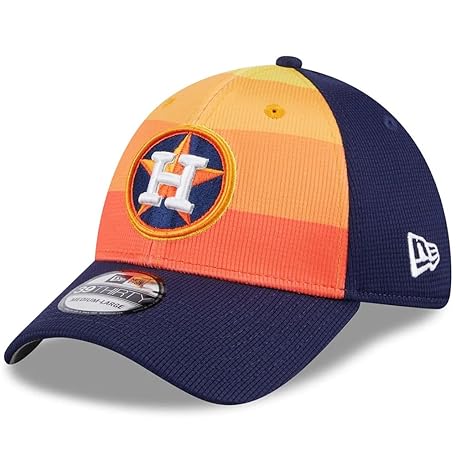 New Era ヒューストン・アストロズ 39THIRTY 2025 バッティング練習 ストレッチフィットキャップ、帽子, ネイビーオレンジ, Large-X-Large