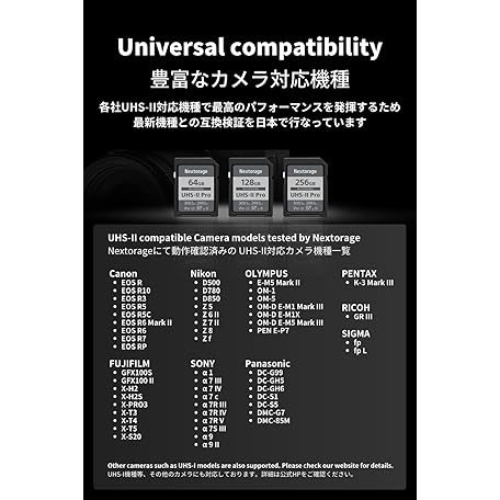 Thông tin sản phẩm Nextorage NX-F2PRO128G/INE 128GB UHS-II V90 SDXC Memory Card, F2PRO Series, pSLC, 4K, 8K, Maximum Read Speed, 300MB/s Write Speed, 299MB/s
