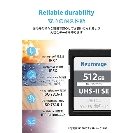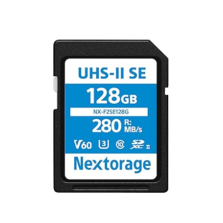 Thông tin sản phẩm Nextorage NX-F2SE128G/INE 128GB UHS-II V60 SDXC Memory Card, F2SE Series, 4K, Max Read Speed 280MB/s and 100MB/s Write Speed