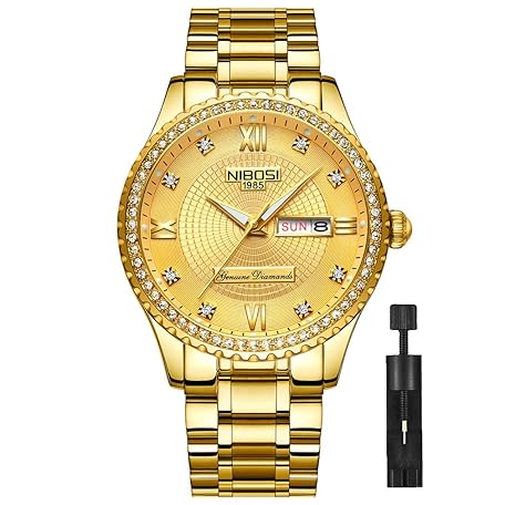 Sản phẩm NIBOSI Men's Watch, Diamond, Business, Wristwatch, Gentleman, Gold, Waterproof, Analog, Stylish, Classic, Casual, Metal Band, Stainless Steel, Date, Gold Dial, Bracelet Type đang được bán với giá ưu đãi là $34.5312 tại nước Nhật.