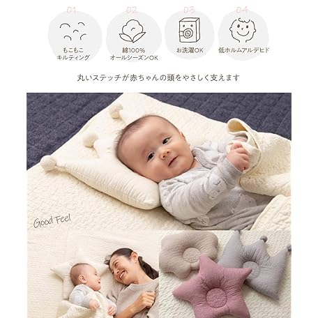 Niceday 36269892 mofua IBUL Baby Pillow, Smoky Pink, Cloud, 100% Cotton, Cloud Pattern, Quilted, Washable, Low Formaldehyde