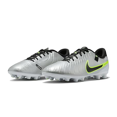 Nike DV4339-001 Men's Soccer Spike Tiempo Legend 10 Academy HG Low Cut Soccer Shoes for Hard Ground Use with Dirt and Artificial Turf, Silver/Black, metallic silver/bolt/black, 28.0 cm