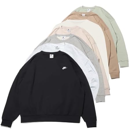 Nike Set Compatible Model Club Oversized French Terry Crew Sweatshirt, Trainer, Black, Gray, Sail, White, Khaki, Green, Sportswear, Gym, Muscle Training, Casual, Authentic, Top Only, Men's