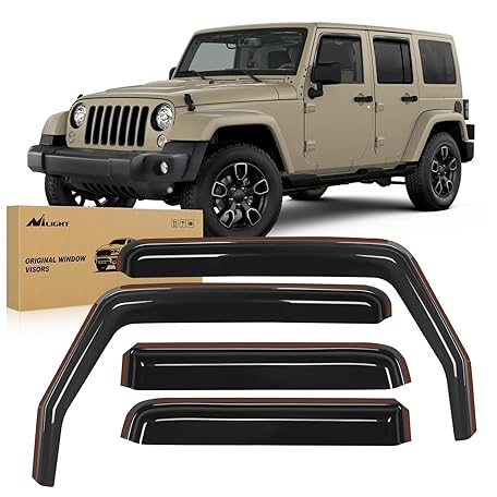 • Nilight Channel Rain Guard Wrangler JK 2007 2008 2009 2010 2011 2012 2013 2014 2015 2016 2017 2018 Unlimited 4 Door Window Deflector Vent Window Visor