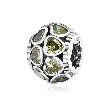 NINGAN 誕生石 ラブ オールアラウンド ハート ビーズ チャーム 925 スターリングシルバー ハッピー バースデー チャーム ギフト パンドラ & ヨーロピアン ブレスレット&ネックレス対応