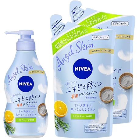 Nivea Angel Skin Body Wash, Acne Clear, Citrus & Herb Scent, Pump + Refill (11.8 fl oz (350 ml) x 2 Packs