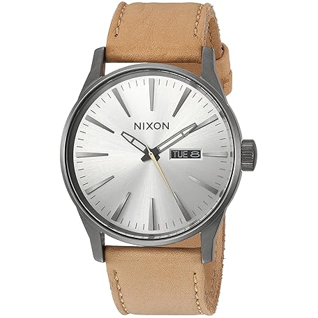 Nixon Men's Sentry Stainless Steel Japanese Quartz Watch with Leather Synthetic Strap, Brown, 23 (Model: A1052741)
