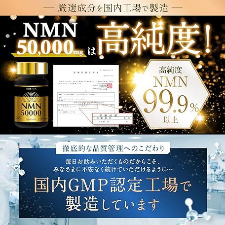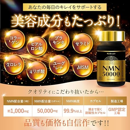 Thông tin sản phẩm NMN Supplement, 50,000 mg, Premium, Made in Japan, High Purity, 99.9% Domestic GMP Certified Factory, Reaches Intestine, Acid-resistant Capsules, 150 Capsules, Hyaluronic Acid, Collagen, Placenta