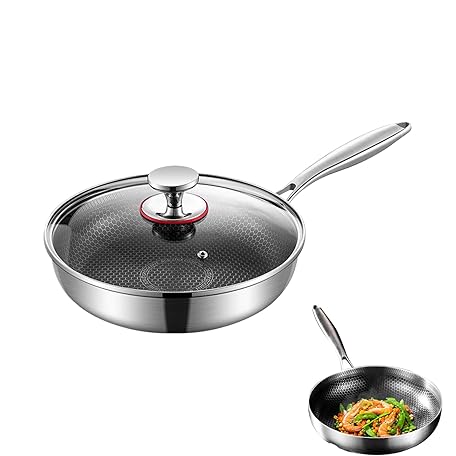 Nonstick Pans - Stainless Steel Nonstick Cooking Pans Lightweight Scratch-resistant Cover Frying Pan | Durable Cookware Set Kitchen Baking Grill Home Apartment Saute Meal Prep