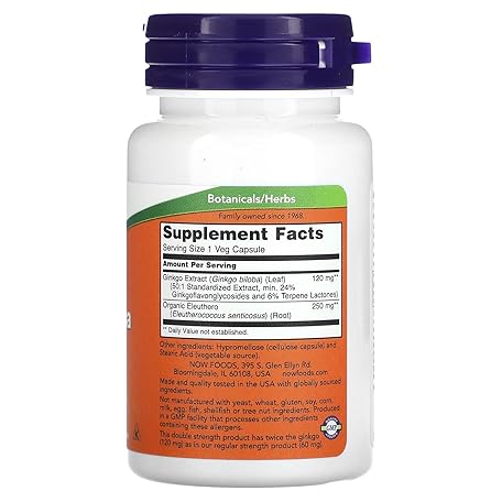 Thông tin sản phẩm NOW Foods, Ginkfish, Double Ingredient, 120 mg, 50 Vegetable Capsules