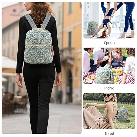 • NOYINMIN(ノイインミン) レディース スモール フローラル キルト コットン バックパック パース 2点セット マルチポケット ショルダー ハンドバッグ 通勤 旅行