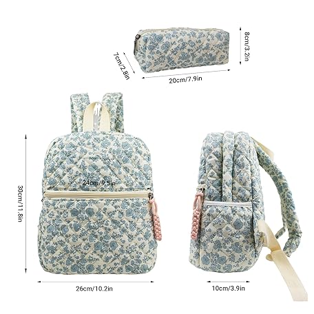NOYINMIN(ノイインミン) レディース スモール フローラル キルト コットン バックパック パース 2点セット マルチポケット ショルダー ハンドバッグ 通勤 旅行