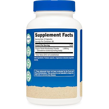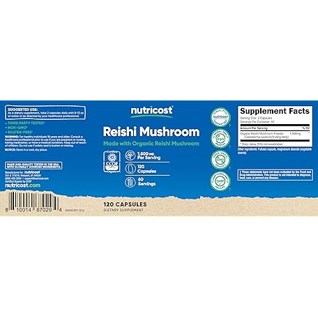 Thông tin sản phẩm Nutricost Organic Reishima Mushroom 1500mg, 120 Capsules, Non-GMO, Gluten Free