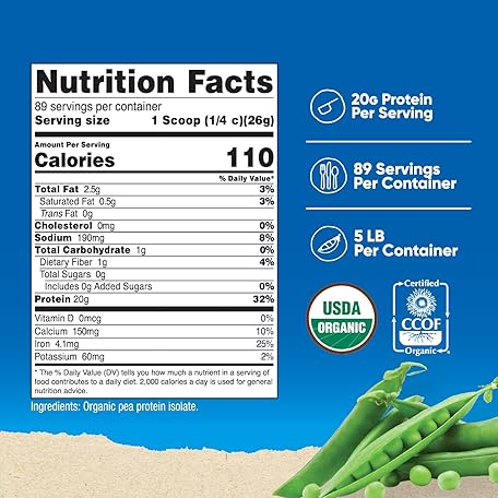 Thông tin sản phẩm Nutricost Pea Protein, Unflavored Organic Pea Beans, 5LB, 89 Serving