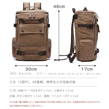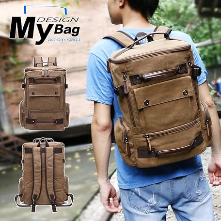 N\W NW Men's Canvas Backpack, Durable, Large Capacity, Commuting to Work or School, Business Trips, Travel