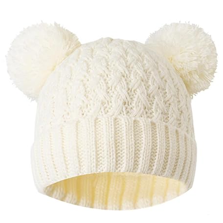 • Nydotd キッズ 幼児 ウィンターハット ガールズ ビーニー ダブルポンポン付き 子供用 フリース裏地 ニットビーニーキャップ