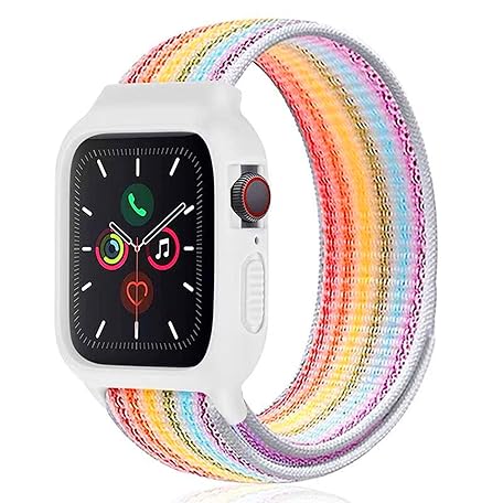 Nylon Sport Band with Case for Apple Watch Band 45mm 41mm 44mm 40mm Protective Silicone Bumper Case with Nylon Sport Loop Strap for Series 8/7/6/5/4/SE/SE2 Kids Women Men