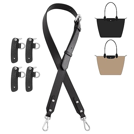 OAikor アップグレードされた財布ストラップ Longchampバッグ対応 滑り止めレザーバッグストラップ 変換キット バックル4個 ハンドバッグ クロスボディ ショルダーストラップ 34~48インチ 調節可能 女性用 (ブラック)