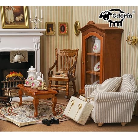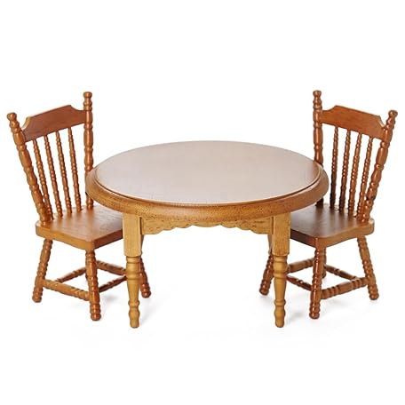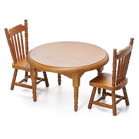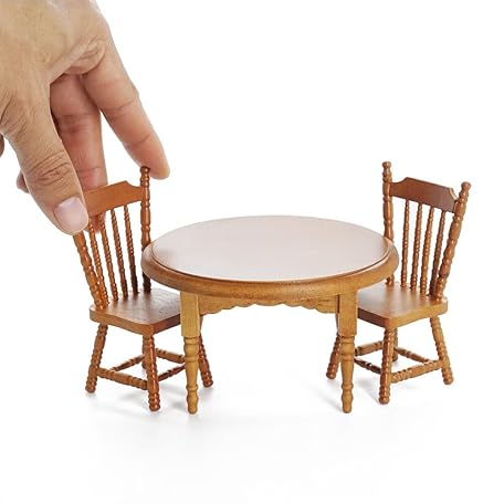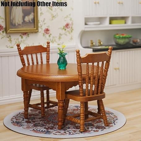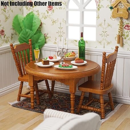 • Odoria Dollhouse Dining Table Set Miniature - 1/12 Scale Table Round Chair Dining Room Kitchen Retro - Mini Drinky Furniture Wood Brown