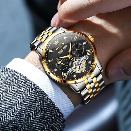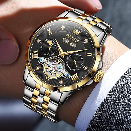 Thương hiệu OLEVS là cái tên nổi tiếng được rất nhiều khách hàng trên thế giới chọn lựa. Với kiểu dáng đẹp mắt, sang trọng, sản phẩm OLEVS Men's Mechanical Automatic Moon Phase Wristwatch, Stylish, Luxury, Date, Skeleton Style, Waterproof, Popular, Luminous Watch for Men, black and gold, Bracelet Type là sự lựa chọn hoàn hảo nếu bạn đang tìm mua một món cho riêng mình.