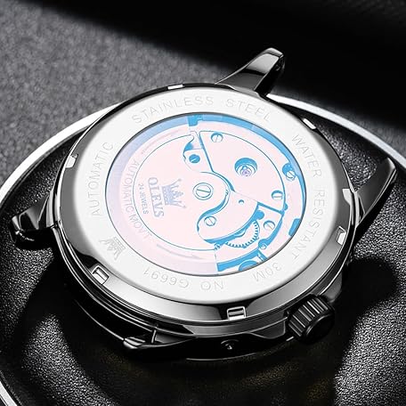 Thông tin sản phẩm OLEVS Men's Mechanical Automatic Moon Phase Wristwatch, Stylish, Luxury, Date, Skeleton Style, Waterproof, Popular, Luminous Watch for Men, blue & gold, Bracelet Type
