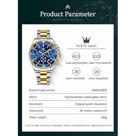 Thông tin sản phẩm OLEVS OLVES Men's Wristwatch, Fashionable, Popular, Quartz, Stainless Steel Band, Casual, Waterproof, Luminous, Easy to Read Dial, Business Wristwatch, 2870G-JL, Modern