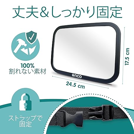 Oncoベビーミラー後部座席用 - 100%割れない素材でできたチャイルドシートミラー – 2023年ベストトラベル発明品受賞 – チャイルドシート鏡 – 出産祝い