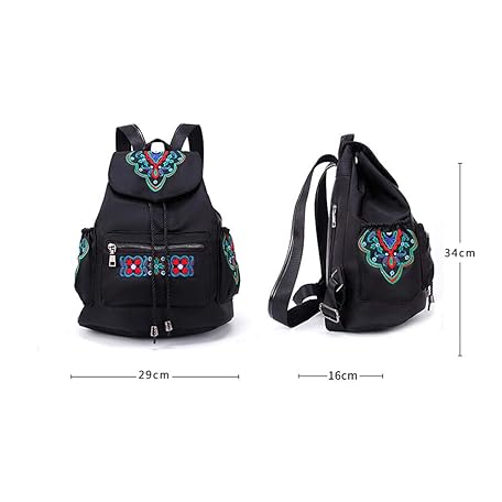 O'NEILL(オニール) Aonijie Rucksack, Chinese Embroidery, Rucksack, National Embroidery, Canvas Bag, Backpack, Women's, Black