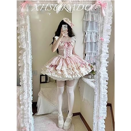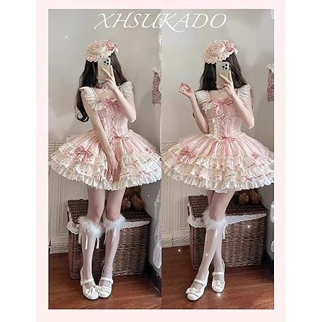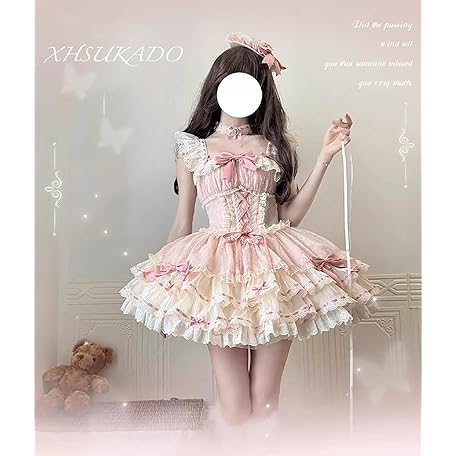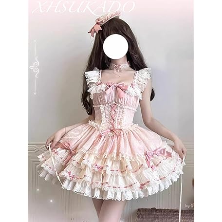 • [XHSUKADO] ロリータ OP ワンピース フラッタースリーブ リボン レディース レース レースアップ チュール 花嫁風 刺繍 洋服 フリル 宮殿風 森ガール 姫様 お嬢様 Lolita ドレス アイドル 衣装 dress 女装 春 夏 秋 冬