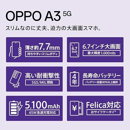 Sản phẩm oppo a3 5g purple đang được bán với giá ưu đãi là $150.8887 tại nước Nhật.