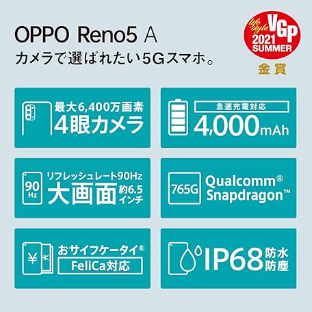 Sản phẩm OPPO Reno5A シルバーブラック CPH2199 docomo/au/SoftBank/Rakuten Mobile 回線対応 おサイフケータイ FeliCa đang được bán với giá ưu đãi là $254.1771 tại nước Nhật.