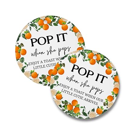 Orange Pop It When She Pops Cutie ミニシャンパンボトルタグ | 30個パック 2.5インチ ハングサークル 穴付き 性別披露 ベビーシャワー パーティー 記念品 スプリンクルラベル ステッカー