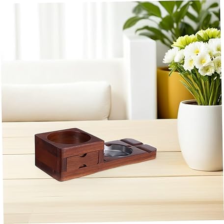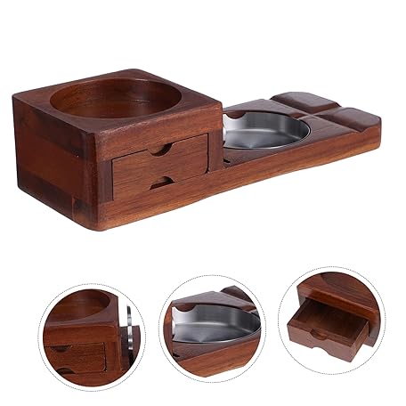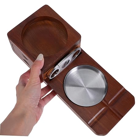 • ORFOFE 実木灰皿 ウイスキートレイ付き 葉巻スタンド 引き出し付き 携帯用シガーアクセサリー メンズパーティー用 安定設計 大容量灰受け
