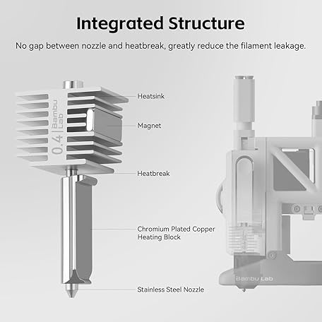 • Original Bamboo Lab A1/A1mini Hot End 0.4mm High Temperature & High Speed Stainless Nozzle + Heating Block Integrated Construction Compatible with Bambu Lab A1 & A1 Mini 3D Printer