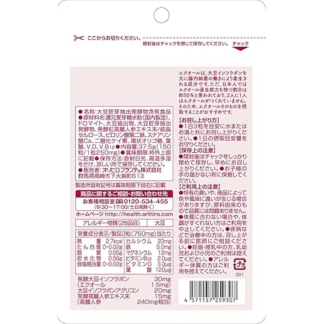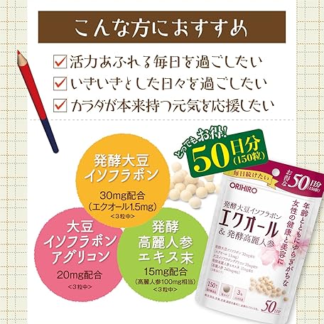 Thông tin sản phẩm Orihiro Equol & Fermented Ginseng, 150 Tablets, Soy Isoflavone Agricon, 50 Day Supply