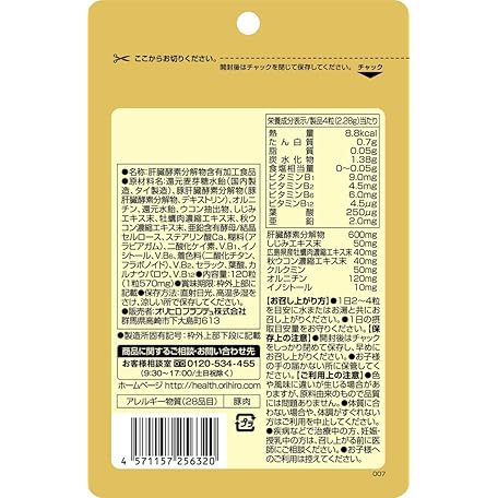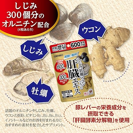 Thông tin sản phẩm Orihiro Liver Extract with Freshwater Clam, Oyster, Turmeric, 120 Capsules