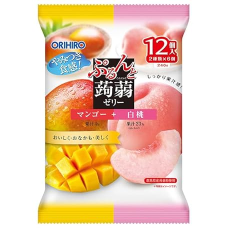 Thông tin sản phẩm Orihiro Purunto Konnyaku Jelly, Pouch, Mango + White Peach (0.7 oz (20 g) x 12 Pieces, Set of 12 Konjac Jelly