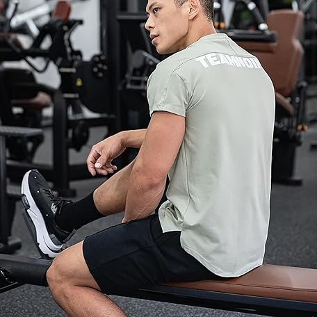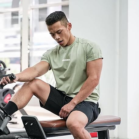 • OROLN ジムTシャツ 筋トレ メンズ トレーニングウェア 半袖 細身 フィットネス ショートスリーブ ストレッチ アクティブ Tシャツ 吸汗 速干 伸縮 通気性 無地