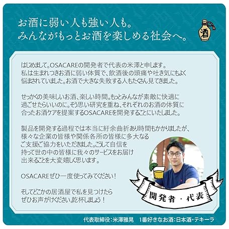 Thương hiệu OSACARE là cái tên nổi tiếng được rất nhiều khách hàng trên thế giới chọn lựa. Với kiểu dáng đẹp mắt, sang trọng, sản phẩm 【医師監修】OSACARE(オサケア)TYPE C お酒CAREサプリメント là sự lựa chọn hoàn hảo nếu bạn đang tìm mua một món cho riêng mình.
