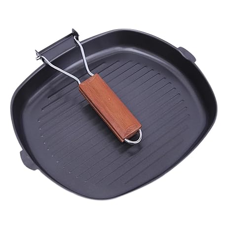 OUNONA 1pc Non-stick Pan Square Grill Pan Nonstick Skillet Folding Grill Pan Camping Pan Folding Pan Pan Square Pan Cooker Dark Grey Wood