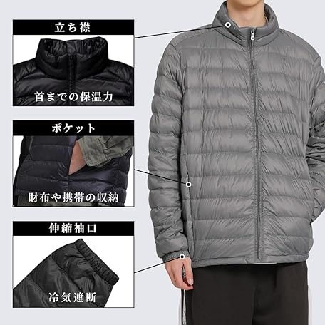 Thông tin sản phẩm PAFHL Down Jacket for Men, Down Coat, Ultra-lightweight, Winter, Cold Protection, Warm, Coat, Jacket, Compact, Thin, For Men, Stand Collar, Stand-up Collar, Zipper