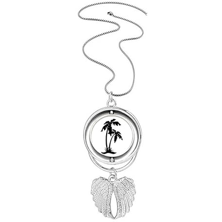 Palm Tree Silhouette Black Beach Angel Wings Rotating Necklace Pendant