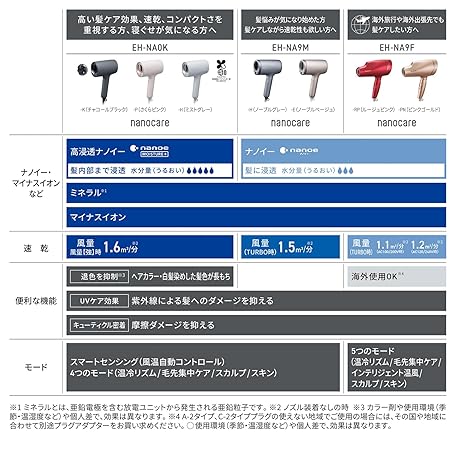 Thông tin sản phẩm Panasonic EH-NA9M-E Dryer, Nanocare, Large Airflow, Quick Drying, Equipped with Nano-E & Minerals, Noble Beige