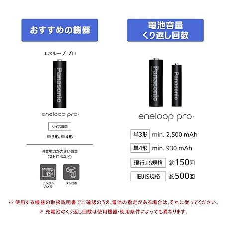 Thông tin sản phẩm Panasonic Eneloop Pro AA BK-3HCD/4H Rechargeable Batteries, 4 Pack of 4, High-end Model Nickel-Metal Hydride Batteries