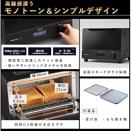 Thông tin sản phẩm Panasonic NT-D700-K Toaster Oven Toaster, Bistro, 8 Temperature Control, Oven Cooking, Baked Potato