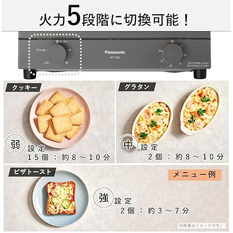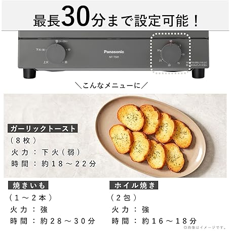 Thông tin sản phẩm Panasonic NT-T501-H Toaster, Oven Toaster, Compatible with Baking 4 Sheets, 30 Minute Timer, Gray