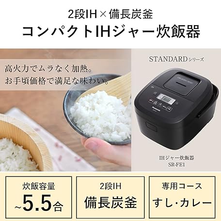 • Panasonic SR-FE101-K Rice Cooker, 5.5 Cup, 2-Stage IH Simple Design, Binchotan Cooker, Black