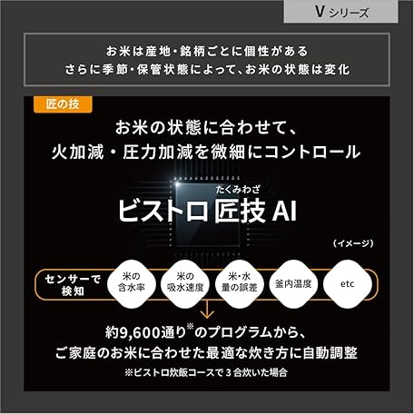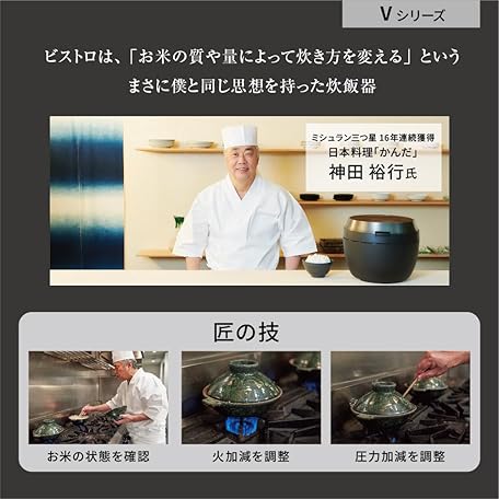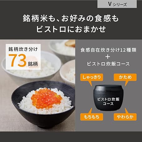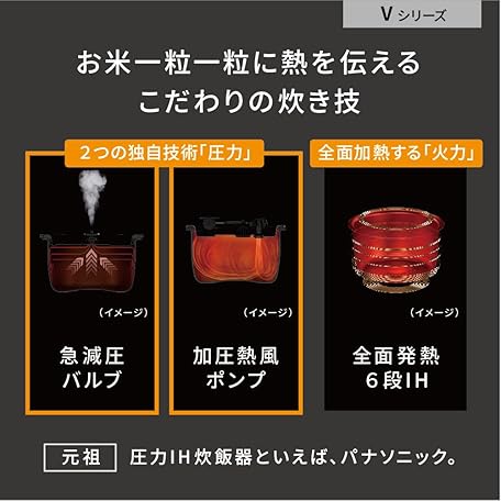 Thông tin sản phẩm Panasonic SR-V10BA-K Rice Cooker, 5.5 Cm, Highest Model Bistro, Artisan AI with Pressurized Hot Air Pump, 2 Cleaning Parts, Black