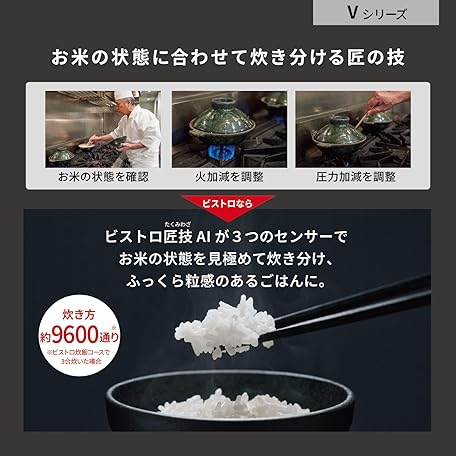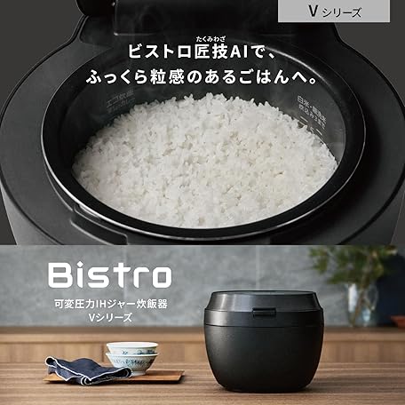 Thông tin sản phẩm Panasonic SR-V18BB-K Rice Cooker, Bistro, Premium Model, Artisan AI, Equipped with Pressurized Hot Air Pump, 2 Cleaning Parts, Black