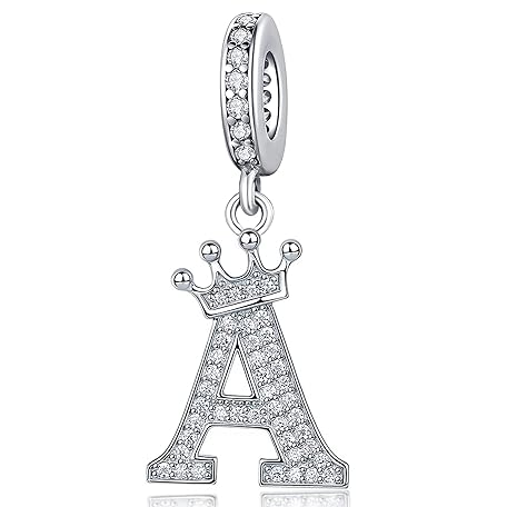 Pandoraチャームブレスレット用シルバーレターチャームブレスレットアルファベットイニシャルクラウンチャームビーズジュエリーギフト女性用, クリスタル, キュービックジルコニア